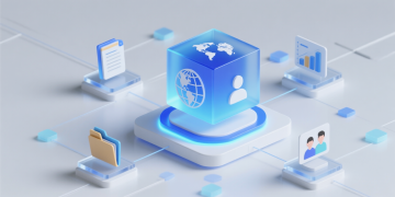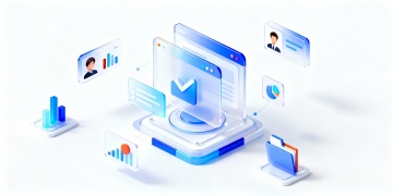 3D风格的宣传界面,画面的主体居左,主体是一个带有图表、数据模块等元素的白色立体分层面板,周围漂浮着蓝色统计图表形状物件,玻璃磨砂质感。画面右侧留白。整体色调以白色为底,搭配蓝色元素,背景是炫彩浅蓝色,呈现出简洁、现代、科技感的视觉效果