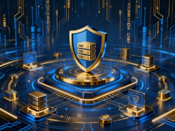 深蓝色渐变背景,画面中央一只伸出的手掌,掌心向上托举着发光的科技感数据元素,最大的蓝色发光向上箭头位于手掌中心,周围环绕多个较小的蓝色箭头,橙色和蓝色的发光数据曲线和点阵从手掌中延伸出来,形成上升趋势,整体呈现出科技感、未来感和数据增长的氛围,光影效果柔和,高光清晰,阴影细节丰富,具有3D质感的平滑过渡,画面简洁而富有视觉冲击力。