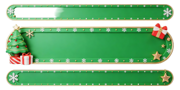 顶部装饰有绿色松枝、红色蝴蝶结、金色星星、红色与金色圣诞球、圣诞袜、金色雪花等圣诞挂饰的圣诞主题边框,底部左侧有坐着的圣诞老人、堆雪人的小雪人,中间是装饰有星星的圣诞树及树下礼物盒,右侧是被雪覆盖的松树和散落的拐杖糖,整体采用白色背景,色彩以红、绿、金为主,营造出温馨欢快的圣诞氛围,画面简洁明快,留白充足,适合作为节日装饰或背景使用。