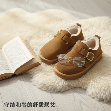 图: 将主推色(如驼色 卡其色 咖色)的鞋子,分别置于对应的秋冬场景元素中:咖色配橡木桌面与铜制文具;驼色配水泥墙与干枯枝;卡其色配粗纺毛呢与羊绒。 文案: “契合秋冬的静谧色盘”