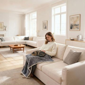 沙发上的女人和宠物不变,背景家居做风格类似但不同的新图