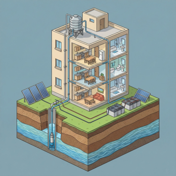 生成地下是水井 地上是高楼 画面整体呈现刨面图 简单表达水利输送关系 立体高楼 最高可以输送100M高楼 生成2张