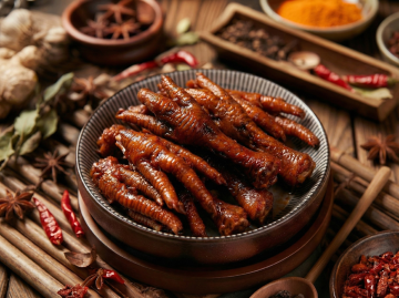 中式感国潮风,大字醒目设计,蒸汽缭绕,展现传统美食魅力。