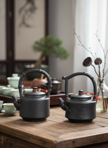 把两个不同的陶壶放在一张图上生成场景图,符合陶壶的特点,生成3张