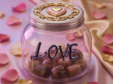 "七夕情人节快乐”3D英文大字,鲜花爱心皇冠装饰,粉嫩