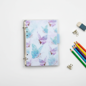 六个不同样式和材质的文件夹,白色背景,排列整齐,配色简洁,3D渲染风格,高清产品摄影,明亮均匀的顶光照明,柔和阴影,光滑塑料质感,清晰的边缘和细节,简约现代设计,视觉层级分明,信息传达高效,适合办公文具宣传,设计感强。