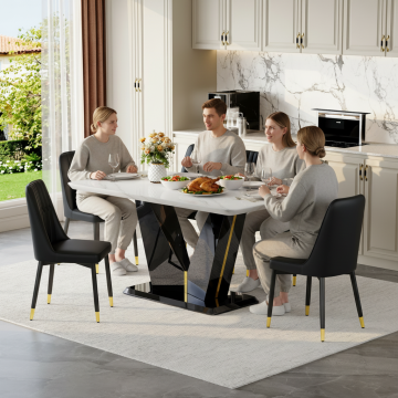 现代简约风格厨房场景,自然光透过窗户洒入,白色台面搭配深棕色木质橱柜,台面中央放置黑色电磁炉,屏幕显示红色数字,周围摆放装有芒果块的白色盘子、盛有蔬菜沙拉的白色餐盘、混合果蔬小碗、橙色水果,旁边有木质砧板和灰色餐布,透明玻璃花瓶插着白色花朵,背景可见不锈钢水龙头和水槽,整体氛围明亮整洁,充满生活气息,细节清晰,光影柔和自然。