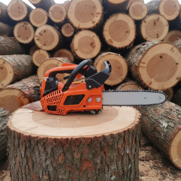 纯色背景,一只手带着手套拿着油锯展示在屏幕中间