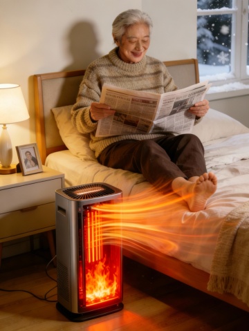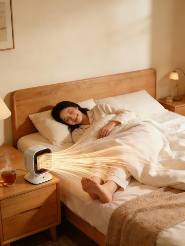 3D重拟物风格,金属与塑料质感结合,暖光营造温馨舒适氛围,实景感强,柔和光线传递冬日温暖。
