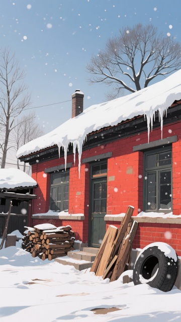 雪落山居,实景感与光影交织,静谧中透出温馨,柔和色调渲染质朴冬景,水墨风与油画风交融,唯美而文艺。