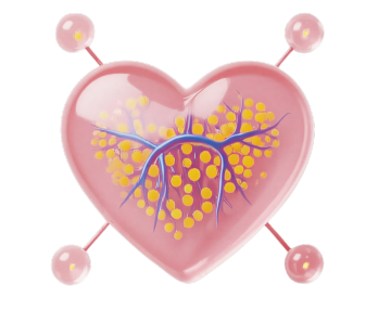 3D重拟物风格的心脏,强体积感与科技光影交织,塑料质感柔和呈现,虚拟现实氛围中漂浮红细胞,传递生命律动之美。