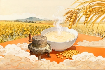 水彩风格插画,纯色背景,六个不同形态的小米元素规整排布,包括:饱满的小米颗粒堆、带绿叶的小米穗、陶碗中盛放的小米、编织袋中倾倒出的小米、小米磨成的黄色粉末、以及稻穗形态的小米谷物,整体保持明亮的黄色调与绿色点缀,细节丰富的水彩笔触,柔和的光影过渡,统一的手绘质感。