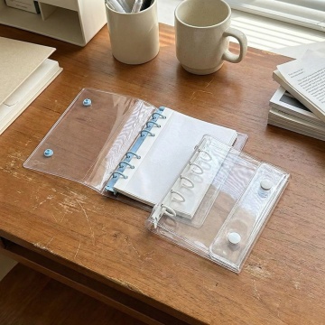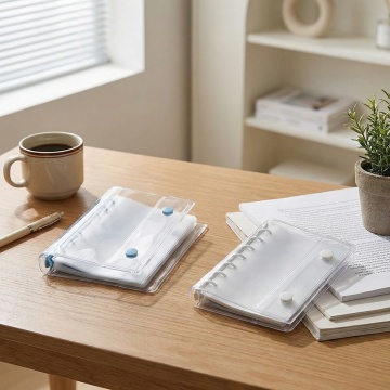 明亮色彩3D渲染效果,一个粉红色封面的活页笔记本平摊打开,露出空白的米白色内页,纸张纹理细腻清晰,左侧装订处有粉色金属活页环,排列整齐,右侧边缘装饰着彩色标签,从上到下依次为黄色、蓝色、粉色和紫色,每个标签上都有白色文字,背景是柔和的粉紫色渐变,整体风格清新简约,光影柔和自然,具有明显的立体感和材质感,呈现出干净整洁的设计感,无LOGO、电话地址及二维码。