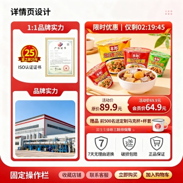 此详情页设计遵循“注意力-兴趣-信任-欲望-行动”的电商转化逻辑,视觉层次清晰,信任构建充分,最终通过限时促销与强保障推动决策闭环。