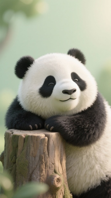 软3D风格的熊猫,毛发生长细腻逼真,萌态十足,营造温馨可爱氛围,适合节日治愈系主题。