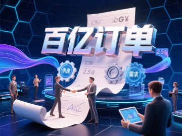 把图片中的标题“智领新航程 绿色共未来”替换成“百亿订单 精准释放”,字体效果及颜色可参考参考图二,船周边增加科技数据感光线。 去掉“战略性新兴产业人才招聘计划”小标题