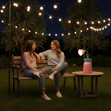 夜幕下,暖光鸭形灯点亮静谧厨房,轻拟物风与简约主义交融,光影温柔流淌,营造出温馨舒适的实景氛围。