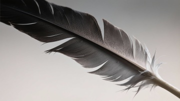 以这根飞羽为参照,生成一张大雁飞羽的细节特写,羽管修长,在阴影中,呈现出深色,羽丝在明处呈现出灰色