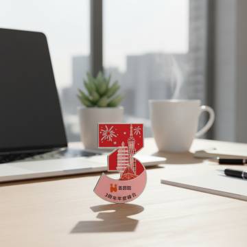 为纪念徽章 生成四个不同场景的 商品主图,图片比例是 1:1