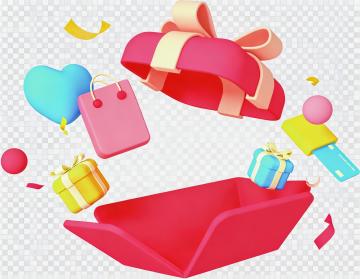 一个具有电商促销感的3D渐变风格插画,以白色为背景,主体是一个带有柔和蓝紫渐变色调的方形礼盒,礼盒顶部敞开,露出里面的红包、优惠券和金币,礼盒下方有一个蓝紫渐变的按钮,周围有多个红包和金币以动态悬浮的方式环绕,整体画面采用明亮的光影效果,带有轻微的发光边缘和高光细节,营造出欢快、喜庆的促销氛围,保持简洁的构图和清晰的视觉层级,色彩过渡平滑自然,充满现代设计感。