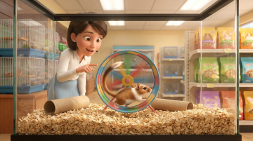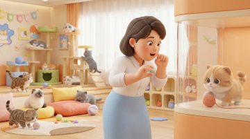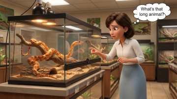 (迪士尼3D动画风格, 皮克斯风格, 高品质3D渲染, 柔和漫射光影, 明亮温暖色调) 宠物店内部布置得像热带雨林般的青蛙与两栖动物售卖区。