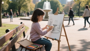 现代温馨家庭场景,一位25岁的孕妇坐在客厅地毯上看书,身穿米色长袖,双手拿着展开的书籍近距离看,眼睛视线对齐书籍,亚洲女性。旁边儿童在地上玩耍,大落地窗连接城市远景。屋内光线柔和,空气中弥漫着淡淡的蜜糖水甜味,营造出宁静、温馨、充满爱意的氛围