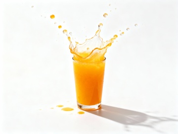 简约主义风格,橙汁与冰块碰撞,清新爽口,夏日清凉感十足。