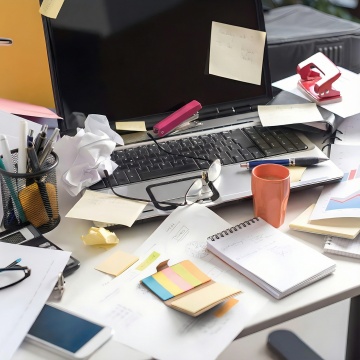 极简主义风格的桌面俯视图,柔和自然光从左上方斜射,营造出明亮干净的氛围,桌面上摆放着不同配色的简约办公用品,包括白色键盘、灰色笔记本、金属色钢笔和一杯冒着热气的咖啡,场景可替换为木质书桌或大理石台面,增加绿植盆栽、简约台灯等不同摆设,整体色调保持清新淡雅,构图采用三分法留白设计,突出物品的质感和空间层次感,适合作为桌面背景使用。