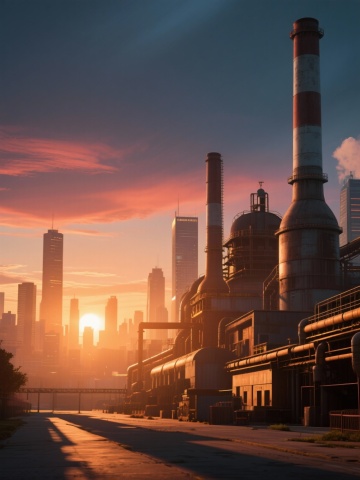 综合视角画面:制造业与服务业并列的双画面,左侧工厂冷色、右侧城市暖色,突出结构差异。