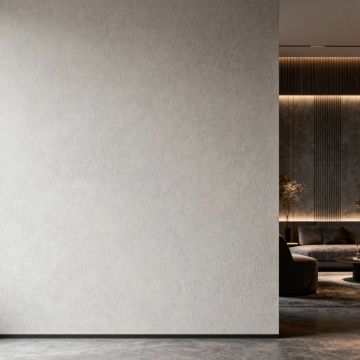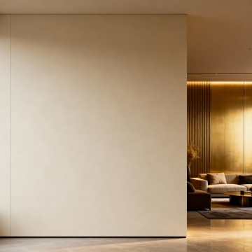 极简主义风格的室内背景,柔和的米白色墙面搭配浅木色人字拼地板,自然光透过米白色半透明窗帘洒入,营造出明亮通透、宁静舒适的氛围。房间中央摆放着一组不同设计的浅灰色布艺沙发,搭配深绿色和浅蓝色的几何图案靠垫,沙发前是一张椭圆形的黑色大理石茶几,上面放置着一个造型简约的玻璃花瓶,插着几支干枯的芦苇。墙上悬挂着一幅抽象风格的装饰画,画面以深蓝色和金色为主色调,呈现出流动的线条感。房间另一侧的墙角摆放着一盆高大的琴叶榕,种植在一个哑光白色的陶瓷花盆中。天花板上安装着一盏造型独特的黑色金属吊灯,灯光温暖柔和。整个空间的配色以低饱和度的灰色、蓝色和绿色为主,搭配原木色的自然质感,展现出简约而不失高级感的现代设计美学。