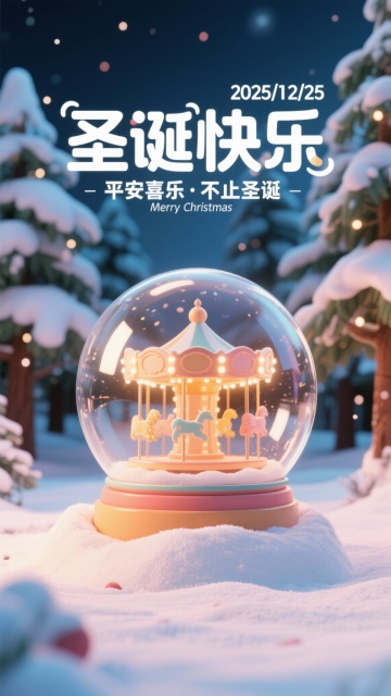 软3D粘土风圣诞场景,萌趣圣诞老人与驯鹿雪橇,搭配梦幻月夜与温馨小屋,营造可爱、喜庆、梦幻的节日氛围。