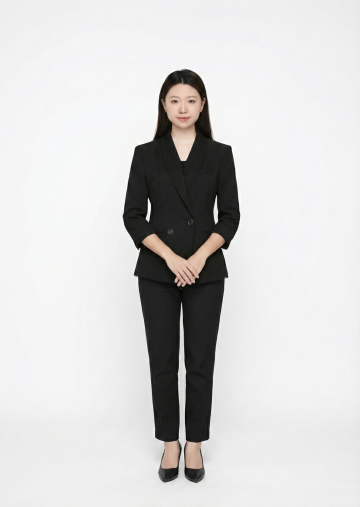 现代简约风格,黑色西装搭配白色内衬,展现商务优雅与性冷淡风的完美融合。