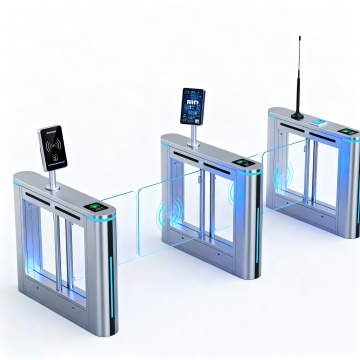 超写实3D渲染的四把不同样式金属钥匙,包含扁平矩形钥匙牌、传统齿纹钥匙等,银色金属材质表面有细腻反光和轻微磨砂质感,黑色圆形钥匙圈连接,整体以对称平衡的方式整齐排列在纯白色背景上,光线从左上方45度角照射形成柔和阴影,突出钥匙的立体感与材质细节,画面简洁干净,具有产品展示级的清晰锐利度和专业静物摄影的光影氛围。