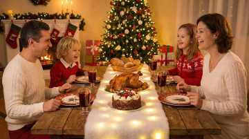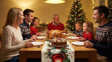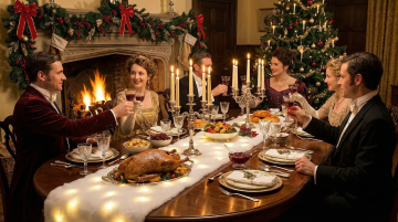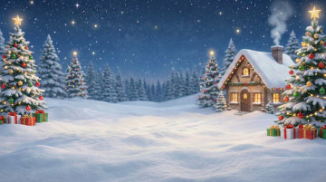 暖光烛火映衬雪覆松枝,微缩圣诞树与松果静置木台,油画质感融汇浮雕层次,重拟物风呈现温馨舒适实景,营造冬夜沉浸式节日氛围。