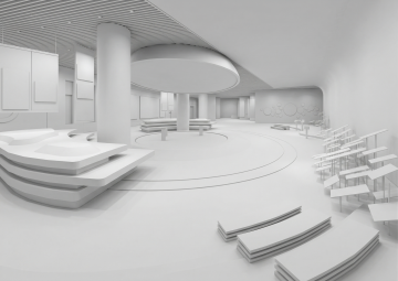 现代感与工业感融合的展厅设计,采用双色设计风与简约主义布局,结合印刷风展板与实景感陈列,呈现科技感十足的展览空间。