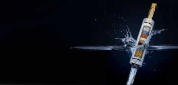 高清晰摄影风格,水花从右侧倾斜向下飞溅,底部形成水花四溅的动态效果,水面波光粼粼,背景为渐变的清新薄荷绿与浅湖蓝色调,光线从中央偏下位置柔和透出,营造出通透、纯净、富有生命力的氛围,水滴晶莹剔透,细节丰富,整体画面具有强烈的动感与层次感。