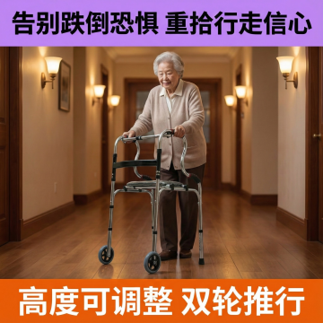 这张图片是产品主体这款产品是助行器 我需要设计20张主图在拼多多上面售卖 可以用 老年人行走 室内 室外 公园 等场景进行主图场景布局设计一个高级主图 一些主图文案内容 厂家直销 可推可坐 加粗加厚 轻便省力 承重力强 全年累计销量10W+ 高度可调整 双轮更稳 可坐可洗澡 承重可达300斤 真材实料 专为行动不便者设计 告别跌倒恐惧 重拾行走信心 康复助行 加厚管材 使用安心 双轮推行
