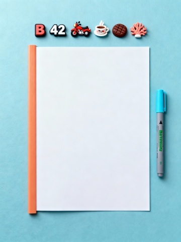 一张夏日风格的相框设计图,整体采用简约清新的插画风格,白色背景干净明亮。画面中央是一个空白的白色相框,相框边缘带有淡淡的米色渐变,右侧边缘用一枚银色金属回形针固定着一张微微露出的浅棕色牛皮纸。相框和纸张的光影柔和,边缘有轻微的阴影立体感,整体氛围轻松明快,充满夏日的清爽感觉。