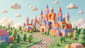 软3D风卡通场景,拟人化大老鼠屋中女孩温馨阅读,毛发生长质感与粘土风格结合,梦幻可爱,趣味十足。