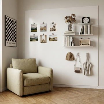 请根据图一产考图给图二生成一张场景图,画面丰富一点,可以把产品放在卧室靠墙放,画面可以丰富一点,也可以添加人物坐在沙发上看书