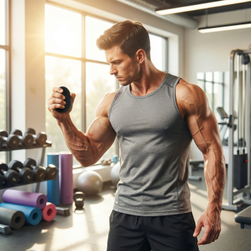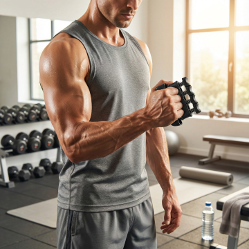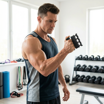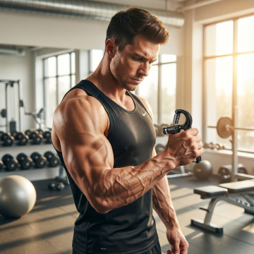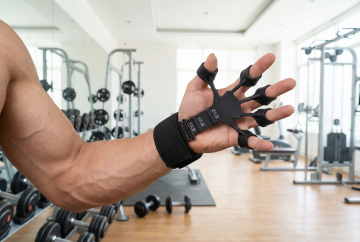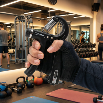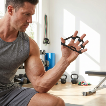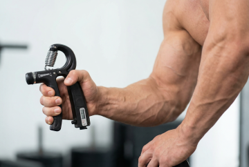一个肌肉男士在房间使用这个握力器锻炼,1:1 注意抓握方式严格参考图片