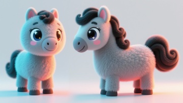 软3D风萌趣小马,毛发生长质感细腻,红紫渐变鬃尾俏皮灵动,搭配金饰与传统纹样鞍垫,尽显喜庆卡通感,寓意吉祥年味。