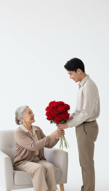 一对头发花白的老年夫妇在不同的户外场景中温馨互动的画面,背景可以是公园的林荫道、湖边的长椅、山间的小径或宁静的花园等。两位老人面带温暖灿烂的笑容,神情愉悦自然,老爷爷穿着浅灰色的长袖针织衫,老奶奶穿着米色的高领内搭和同色系的开衫马甲,老奶奶手中捧着一个白色的茶杯,老爷爷的手臂亲切地搭在老奶奶的肩上,两人姿态亲密和谐。画面整体采用写实风格,光线明亮柔和,以自然光为主,呈现出温暖的色调,绿色的植物背景郁郁葱葱,充满生机,营造出宁静、幸福、安逸的氛围,整体构图清晰,主体突出,细节丰富,具有生活气息和情感温度。