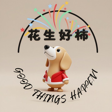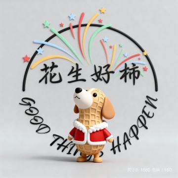 把小狗融入圖中的花生圖案,全圖用軟3D風格