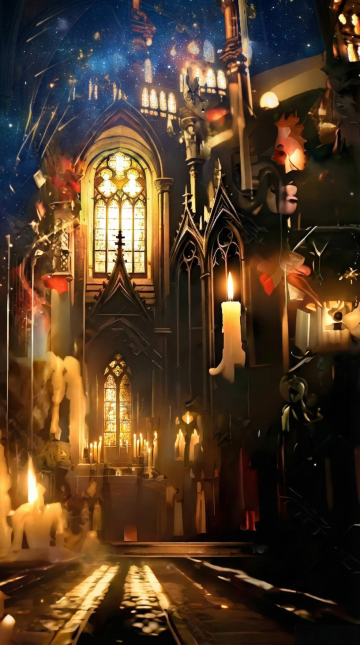 全景构图,一座被遗忘的中世纪石砌钟楼内壁,古老的石灰华墙面从上至下裂开深邃的蛛网纹路,阳光透过穹顶破损的玫瑰窗在墙面上投射出斑斓的彩色光斑,其中一道金色光束恰好照亮墙根处一株从石缝中顽强生长的野蔷薇,墙面上残留着褪色的拉丁文祷文和几处十字形刻痕,部分砖块已松动错位,露出内部含着贝壳的粗糙砂浆,斑驳的光影在厚重的油画画布上形成流动的笔触,整体色调由黎明的青灰向中央的暖金渐变,营造出时间在静默中呼吸的神秘氛围。