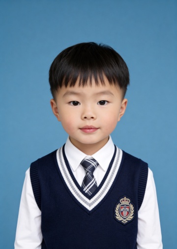 清新感与商务感交织,柔和色调搭配东亚风校服设计,展现舒适优雅的实景质感,细节处尽显可爱童趣证件照。