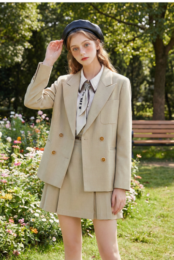 现代简约风,蓝白双色设计,优雅面料感,时尚披肩与裙摆完美融合。