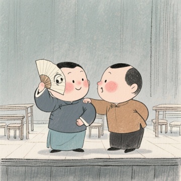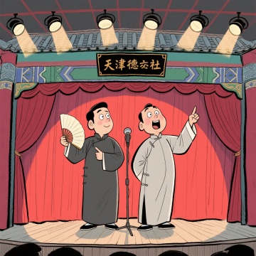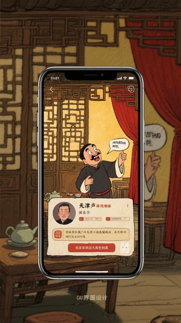 根据这张图片的风格,生成4张ui设计图片,图片内容为天津相声社区,社区的内容可以模仿小红书以及抖音等平台的方式,有很多听说相声的人发表相声意见,内容以及人物要偏向于手绘一点
