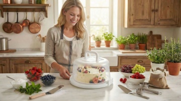 现代简约风3D渲染,重拟物设计呈现真实质感,塑料光泽与木质厨房融合,营造温馨舒适实景感,节日家宴氛围浓郁。