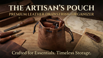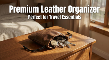 这款商品为抽绳牛皮收纳袋,销售到美国,语言是英语,生成3张图,比例 「16:9」
